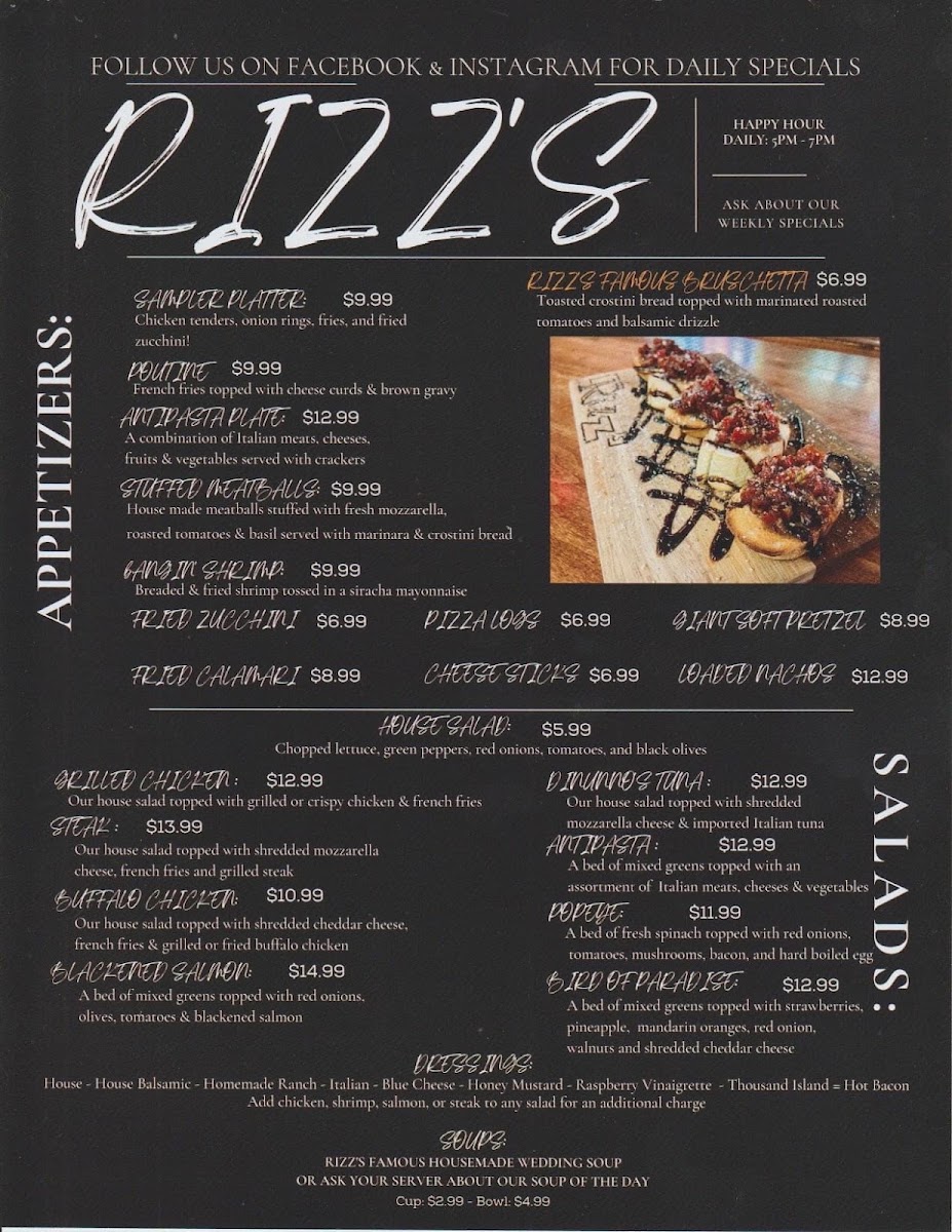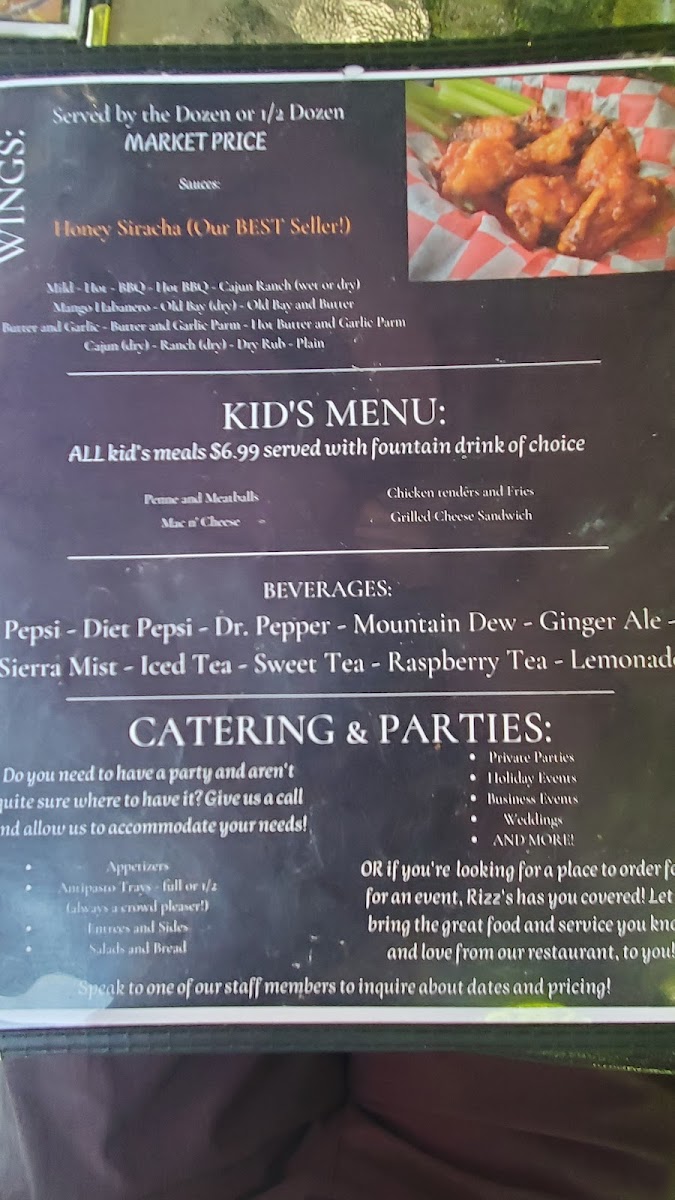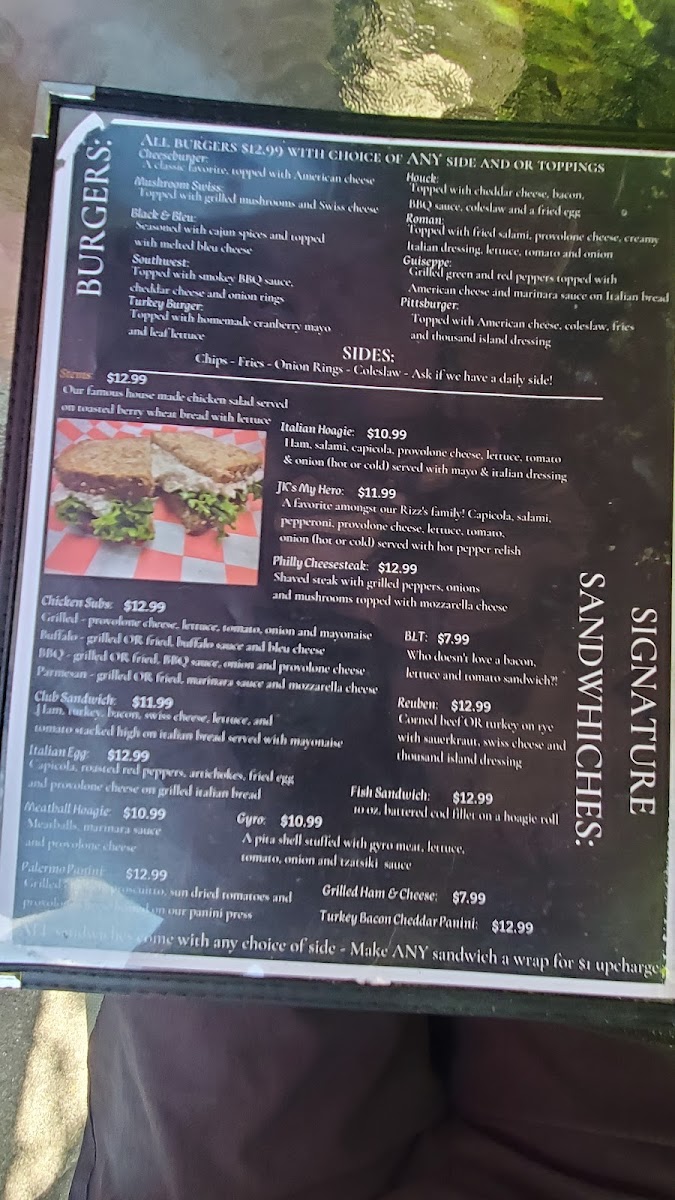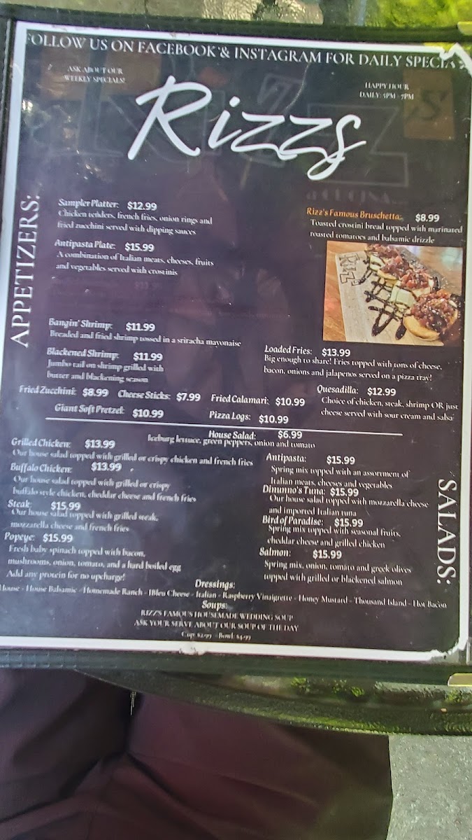 Rizz's offers a comfortable, straightforward menu that reflects its Mid-Atlantic deli roots with a touch of casual dining flair. The selection is inviting and varied, ideal for those looking to enjoy simple, satisfying meals whether stopping in for a relaxed lunch or a casual dinner with friends or family.